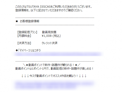 届いているのはTSUTAYA TVと定額プラン8の2通のメールとTSUTAYA TV利用者IDとテレビ専用パスワードです。なくさないように保存しておきましょう。
