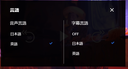 画質も文句なく綺麗(フルHD)で、こんな感じに言語設定も可能です。
